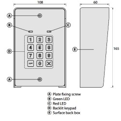 Surface mounted die cast aluminium IP65 rated Wiegand keypad with back lit key. The keypad has a selectable PIN code length and provides audible (sounder) and visual (3 x LED’s) feedback.