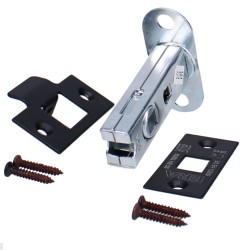 CE marked latch can be used with either lever or knob handles and is supplied complete with a strike plate