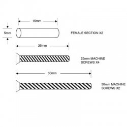 Each set is complete with 2 female centre sections, 4 x 25mm and 2 x 30mm machine screws.