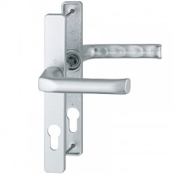 The Hoppe London 113/200LM is an aluminium handle set on a narrow backplate ideally suited for use on for French doors. It has a maintenance-free slide bearing, bolt through M4 fixings and a euro profile cut out.